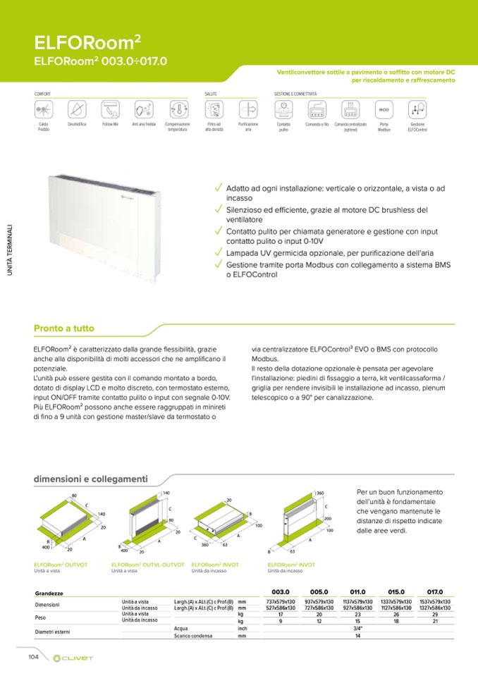 Ventilconvettore sottile a pavimento o soffitto con motore DC