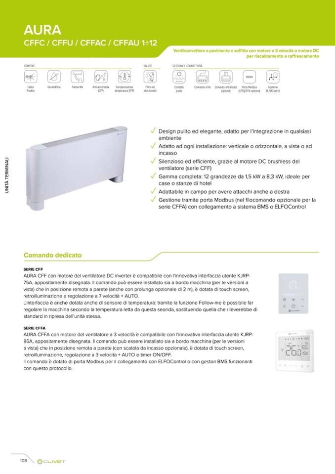 AURA CFF con motore del ventilatore DC inverter è compatibile con l'innovativa interfaccia utente KJRP-