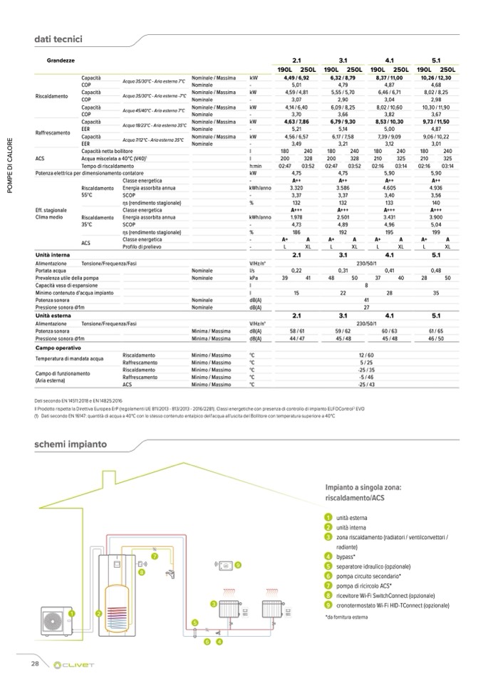 Il Prodotto rispetta la Direttiva Europea ErP (regolamenti UE 811/2013 - 813/2013 - 2016/2281). Classi energetiche con presenza di controllo di impianto ELFOControl