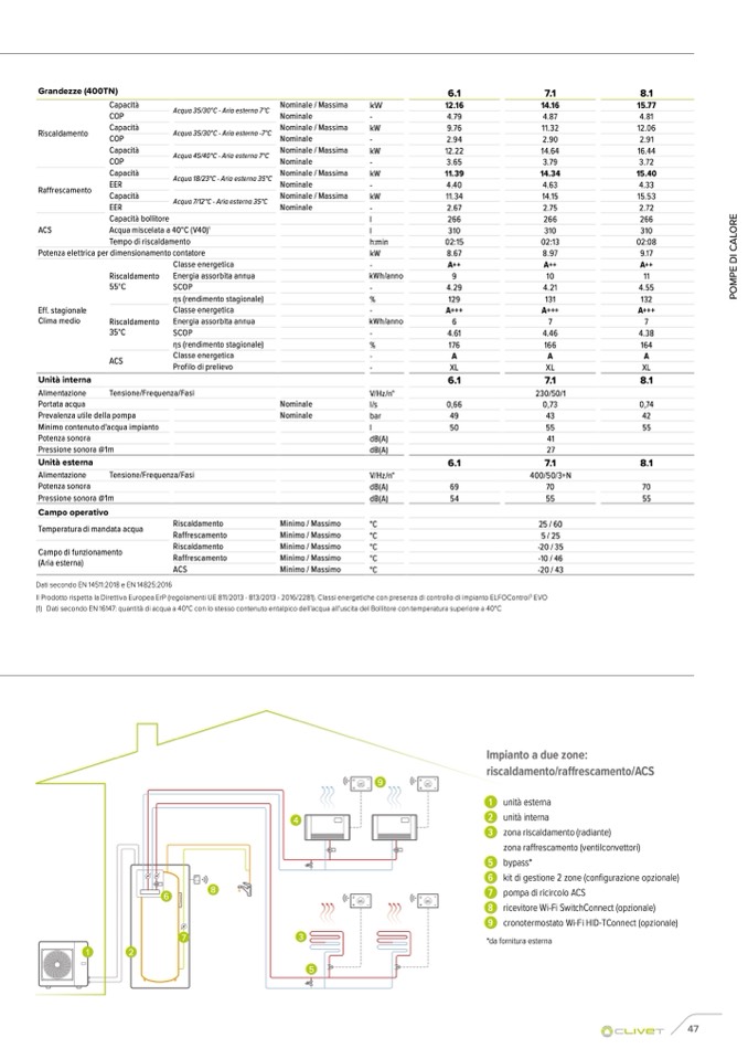 Il Prodotto rispetta la Direttiva Europea ErP (regolamenti UE 811/2013 - 813/2013 - 2016/2281). Classi energetiche con presenza di controllo di impianto ELFOControl