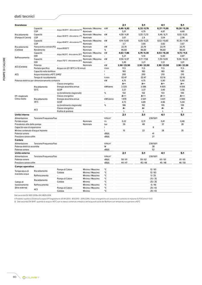 Il Prodotto rispetta la Direttiva Europea ErP (regolamenti UE 811/2013 - 813/2013 - 2016/2281). Classi energetiche con presenza di controllo di impianto ELFOControl