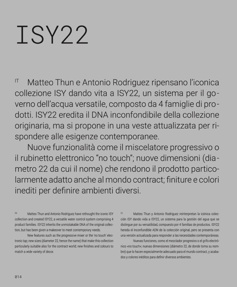 product families. ISY22 inherits the unmistakable DNA of the original collec-