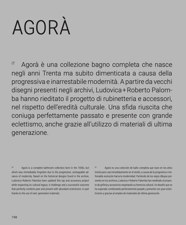 Agorà is a complete bathroom collection born in the 1930s, but