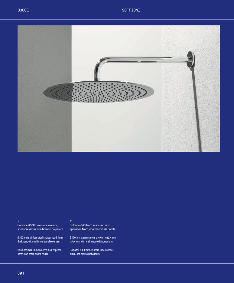 Soffione Ø 300 mm in acciaio inox,