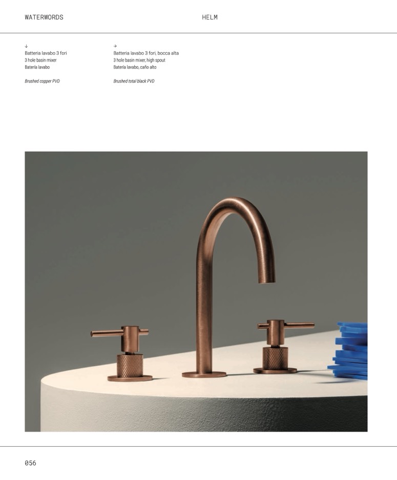 Batteria lavabo 3 fori, bocca alta