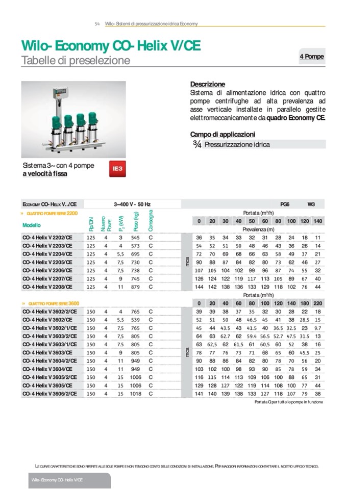 E CURVE CARATTERISTICHE SONO RIFERITE ALLE SOLE POMPE E NON TENGONO CONTO DELLE CONDIZIONI DI INSTALLAZIONE