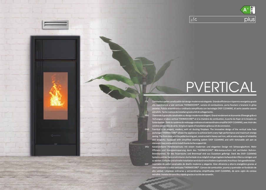 saving. The front door and the pellet burning pot, constructed in heavy cast iron, add an extra degree of reliability