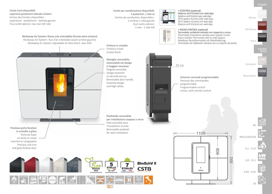 Flue outlet options: top-rear-left side