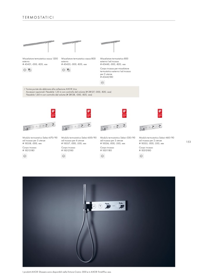I prodotti AXOR Showers sono disponibili nella finitura Cromo -000 e in AXOR FinishPlus -xxx.