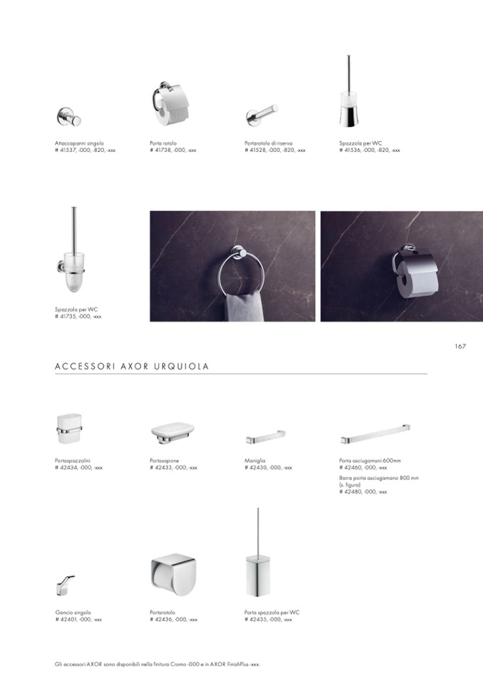 Gli accessori AXOR sono disponibili nella finitura Cromo -000 e in AXOR FinishPlus -xxx.
