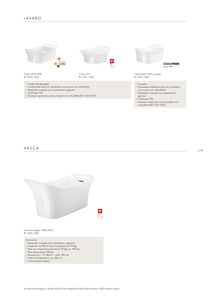 Le vasche da bagno e i lavabi AXOR sono disponibili nella finitura Bianco -000 ⁄ bianco alpino