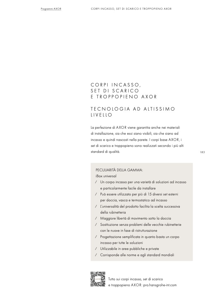 incasso e quindi nascosti nella parete. I corpi base AXOR, i