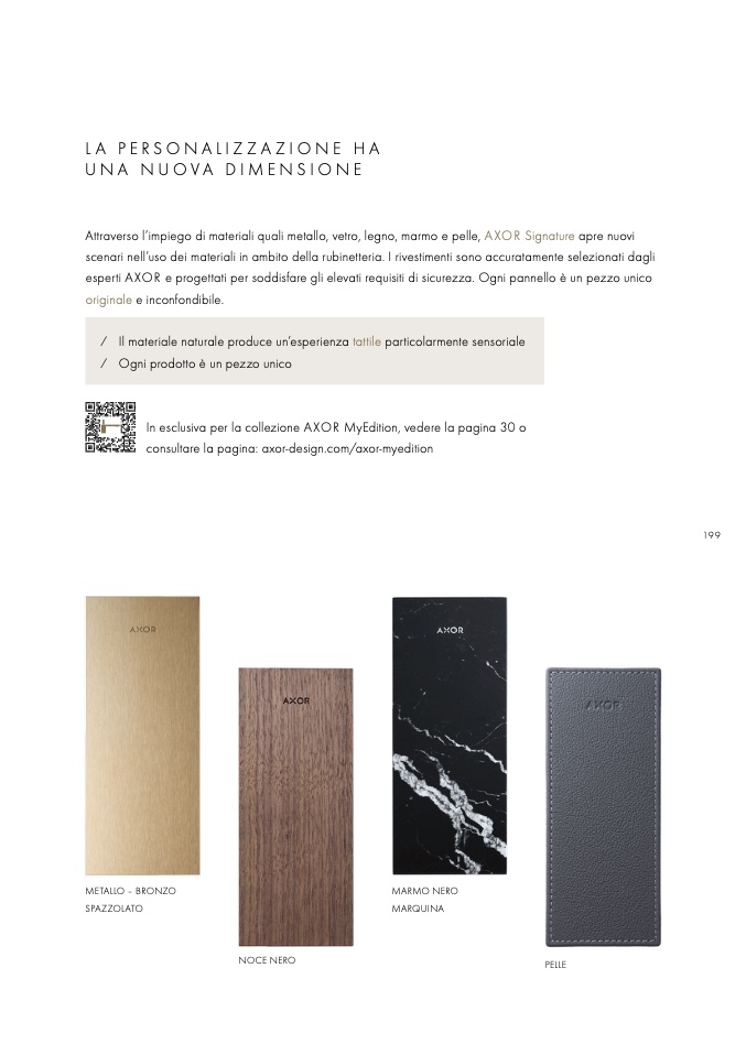 Attraverso l’impiego di materiali quali metallo, vetro, legno, marmo e pelle, AXOR Signature apre nuovi