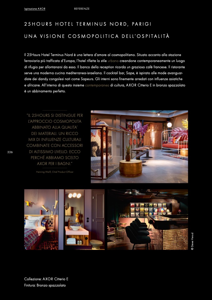 e africane. All’interno di questo insieme contemporaneo di cultura, AXOR Citterio E in bronzo spazzolato
