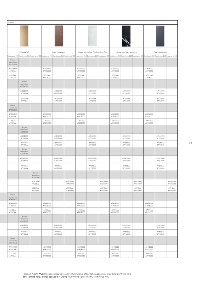 I prodotti AXOR MyEdition sono disponibili nelle finiture Cromo -000 ⁄ Vetro a specchio, -350 Satinato ⁄ Vetro nero,