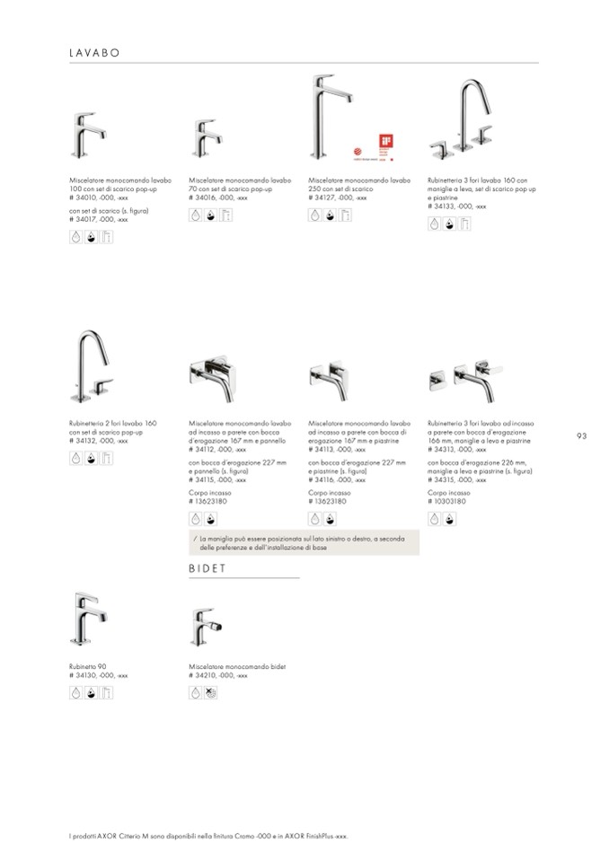 I prodotti AXOR Citterio M sono disponibili nella finitura Cromo -000 e in AXOR FinishPlus -xxx.