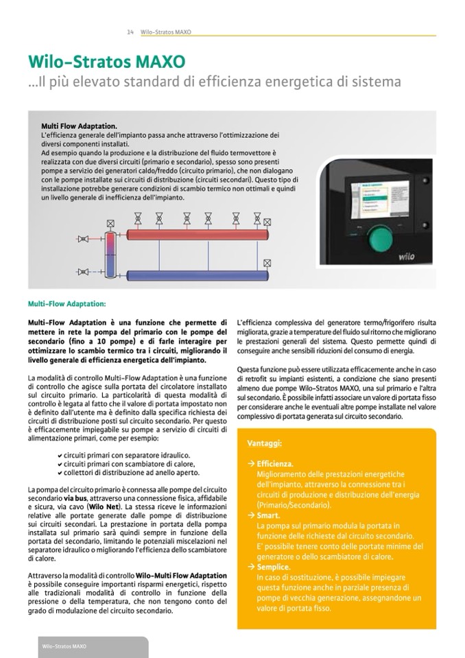 almeno due pompe Wilo-Stratos MAXO, una sul primario e l‘altra