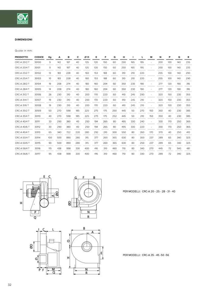 PER MODELLI: CRC-A 20 - 25 - 28 - 31 - 40