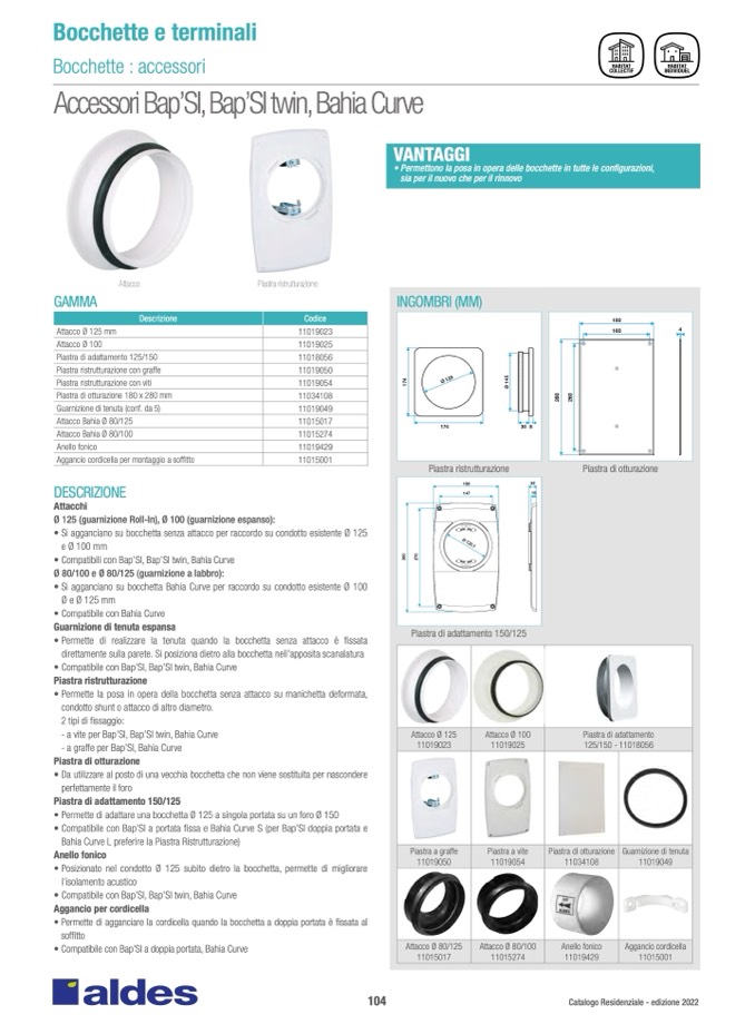 • Si agganciano su bocchetta Bahia Curve per raccordo su condotto esistente Ø 100