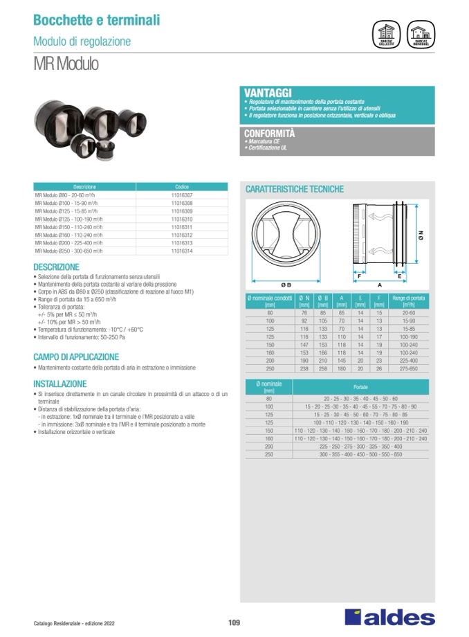 • Corpo in ABS da Ø80 a Ø250 (classificazione di reazione al fuoco M1)