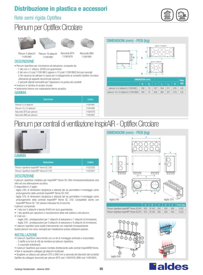 Questi plenum non sono concepiti per installazione presso abitazioni passive.