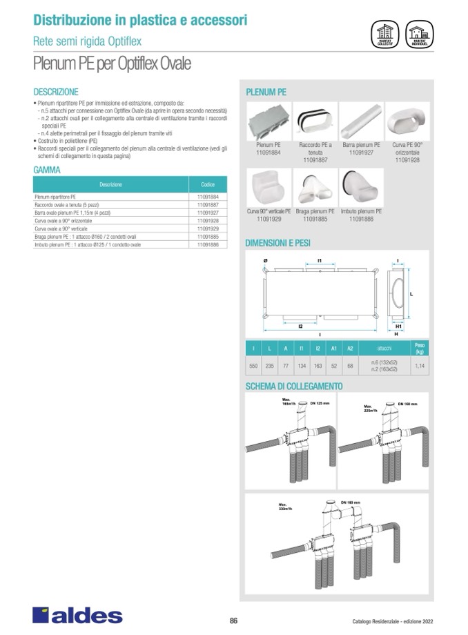 Braga plenum PE : 1 attacco Ø160 / 2 condotti ovali