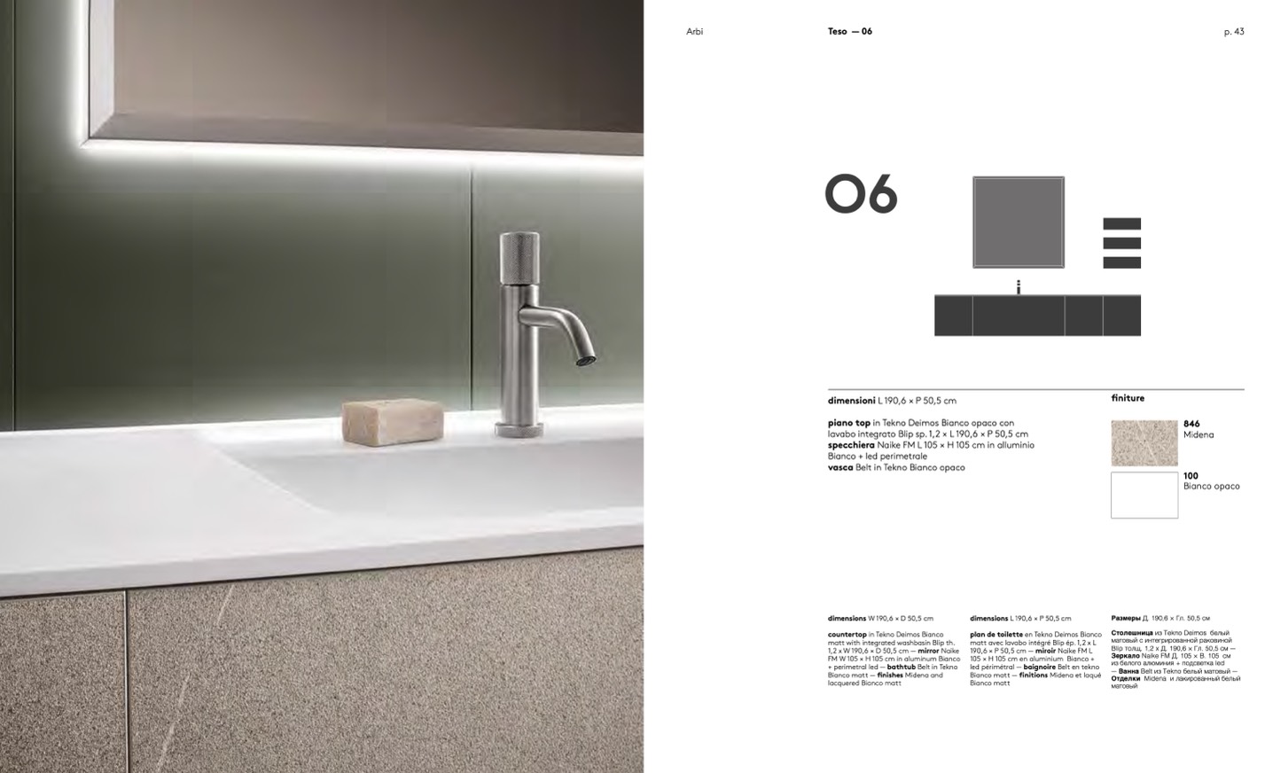 plan de toilette en Tekno Deimos Bianco