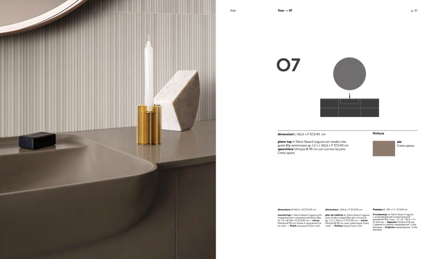 37,5/43 см — Зеркало Olimpia Ø 90 см.