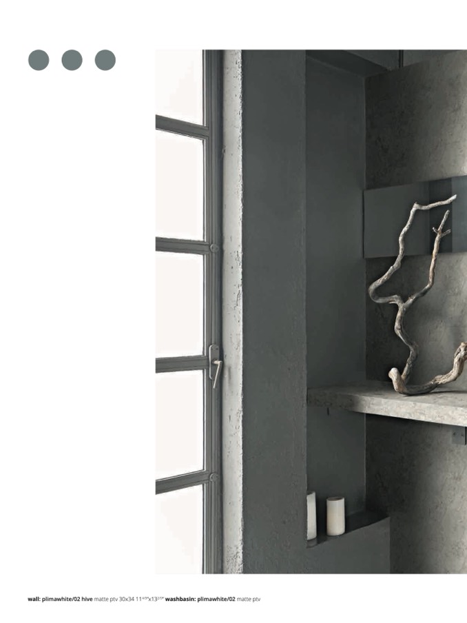wall: plimawhite/02 hive matte ptv 30x34 114/5”x132/5” washbasin: plimawhite/02 matte ptv