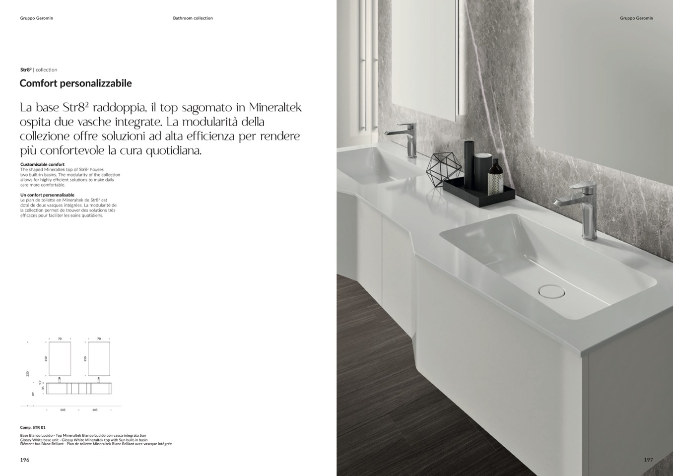 Base Bianco Lucido - Top Mineraltek Bianco Lucido con vasca integrata Sun