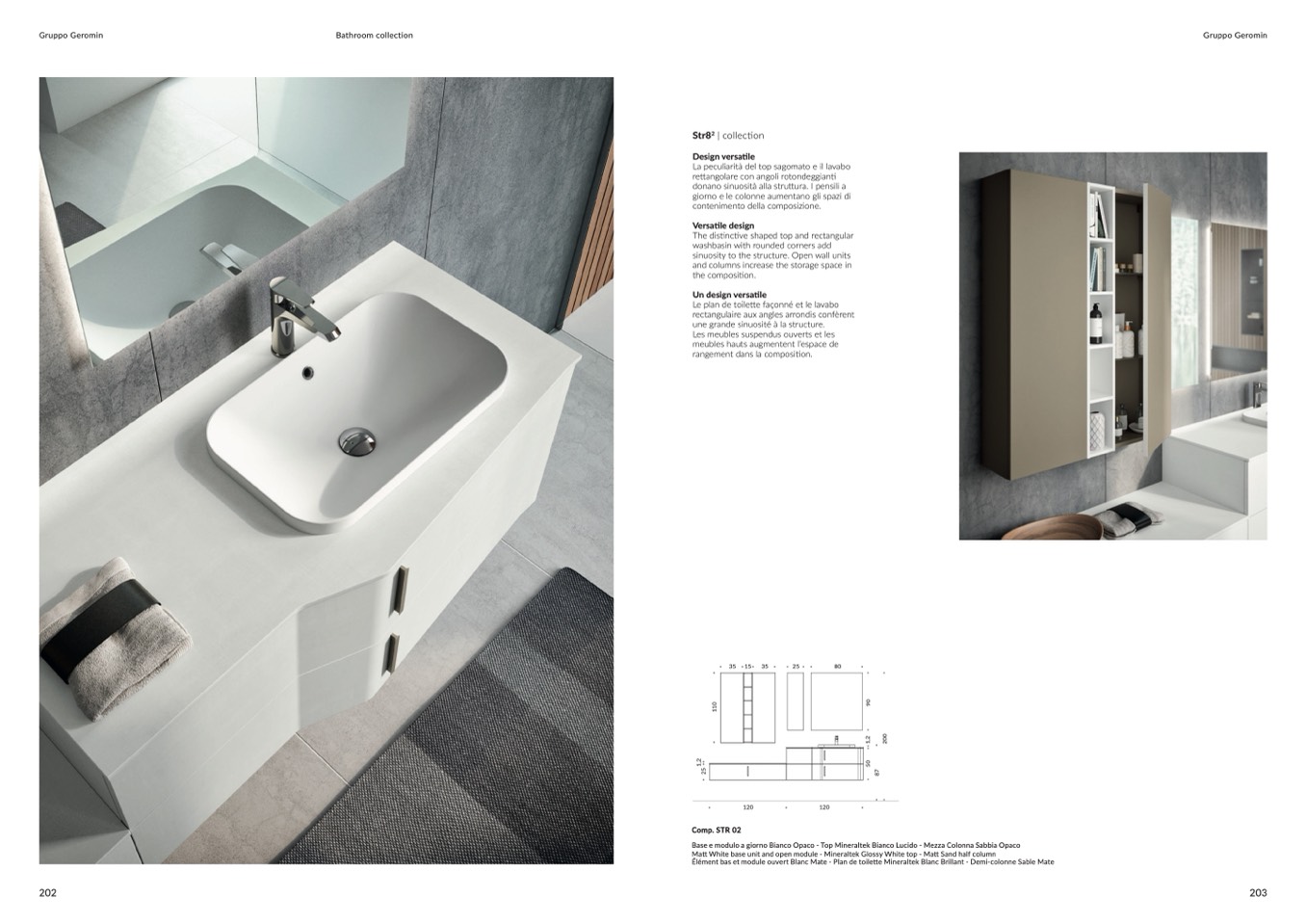 Base e modulo a giorno Bianco Opaco - Top Mineraltek Bianco Lucido - Mezza Colonna Sabbia Opaco