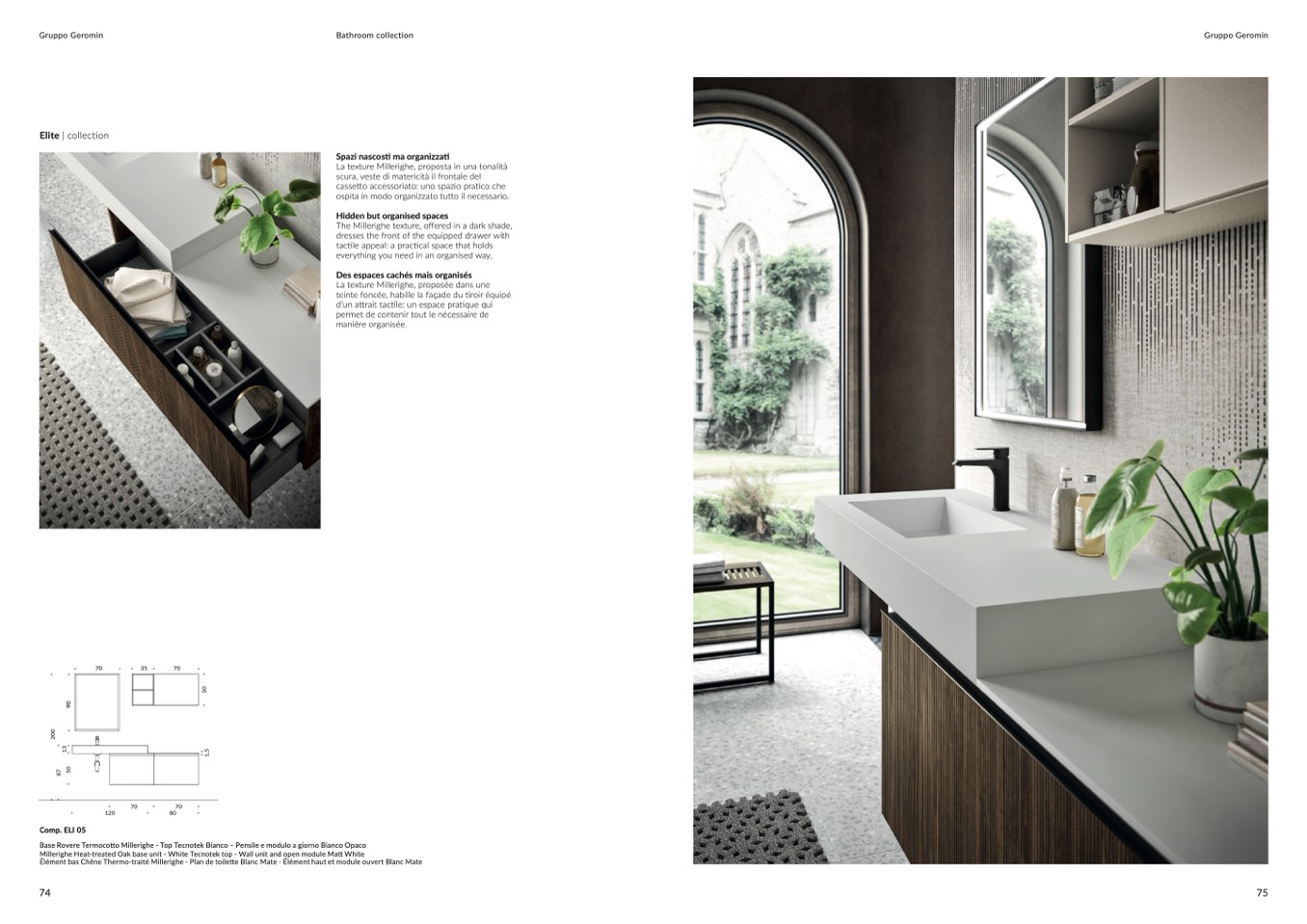 Base Rovere Termocotto Millerighe - Top Tecnotek Bianco – Pensile e modulo a giorno Bianco Opaco