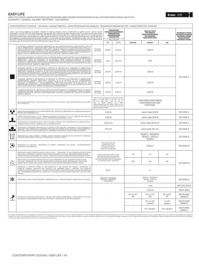 specifications, according to control tests of EN 14411-ISO 13006 Appendix G group BIa UGL. / Dalles en grès cérame fin non émaillé. Carreau