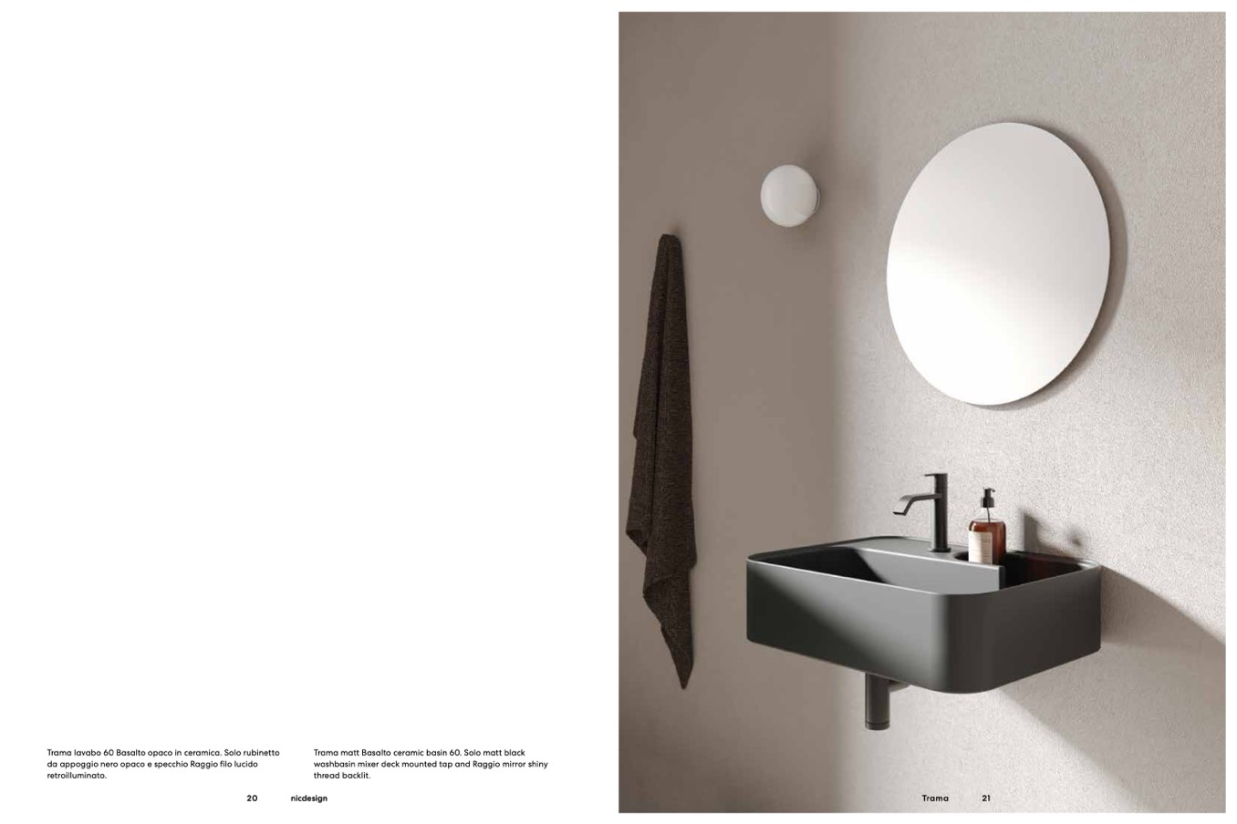 Trama lavabo 60 Basalto opaco in ceramica. Solo rubinetto