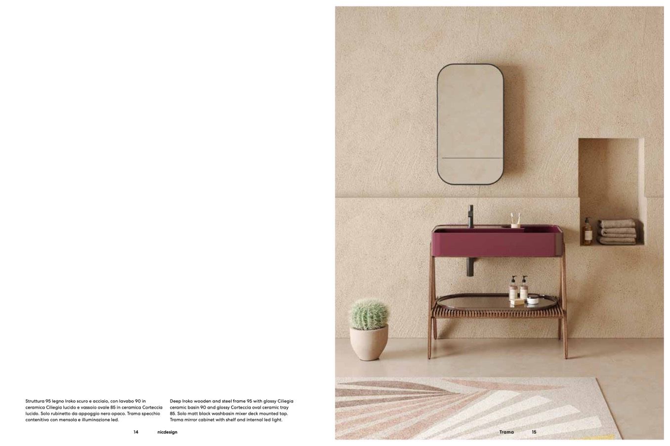 Struttura 95 legno Iroko scuro e acciaio, con lavabo 90 in