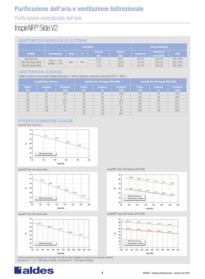 Tutte le misurazioni si basano sulle misurazioni EN 308 del solo scambiatore di calore con le seguenti condizioni
