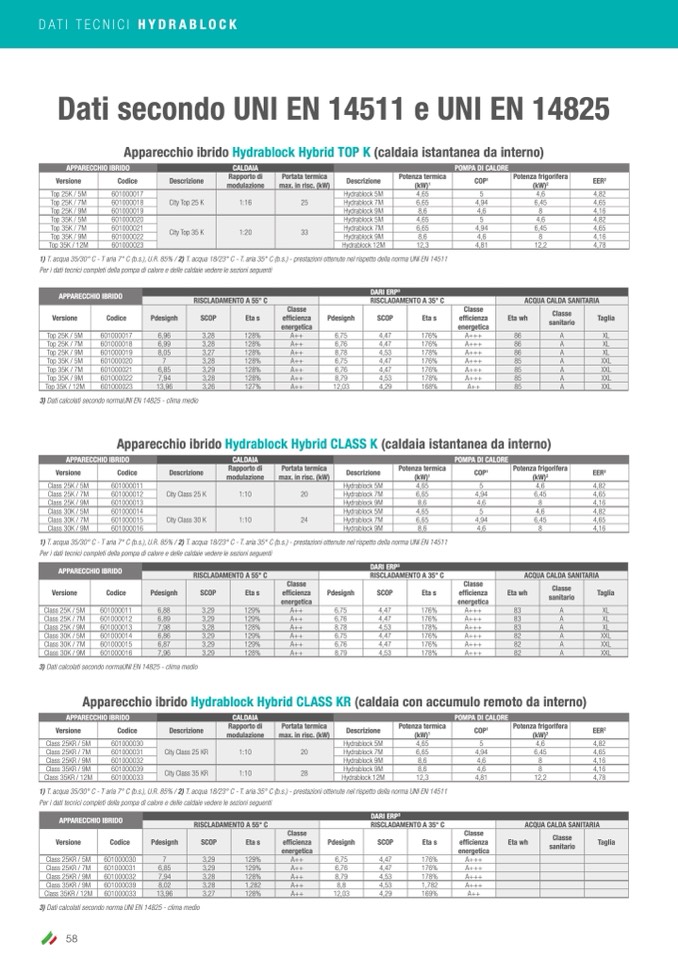 Per i dati tecnici completi della pompa di calore e delle caldaie vedere le sezioni seguenti