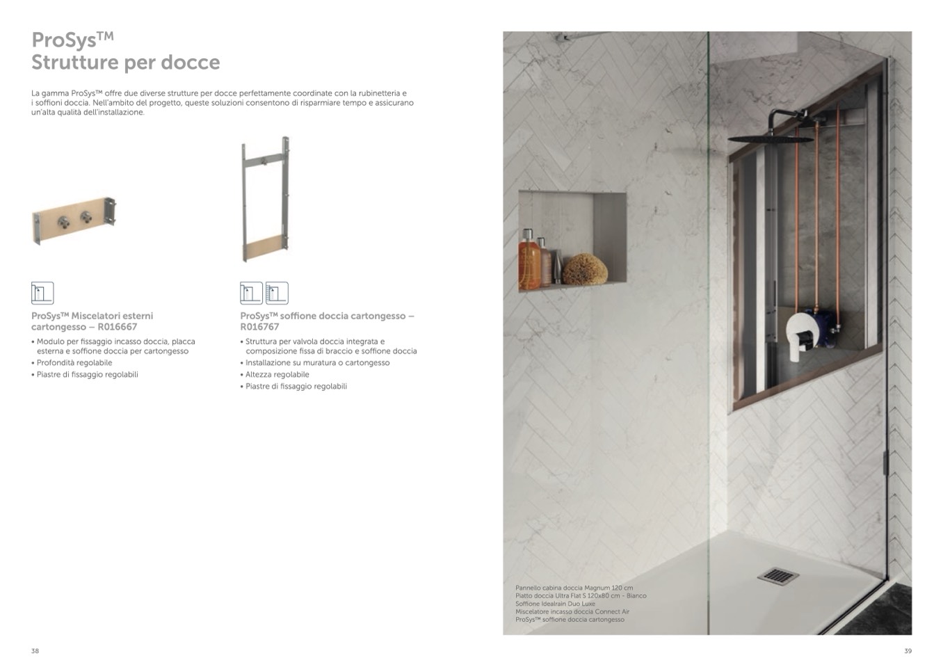 La gamma ProSysTM offre due diverse strutture per docce perfettamente coordinate con la rubinetteria e