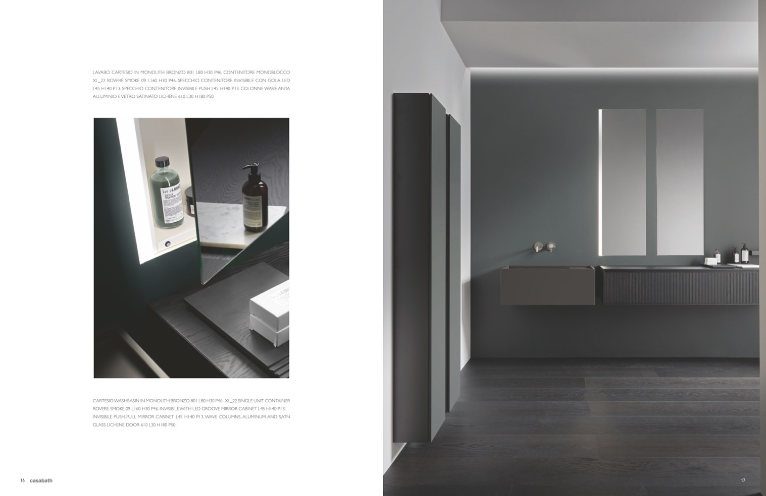 ROVERE SMOKE 09 L160 H30 P46. INVISIBILE WITH LED GROOVE MIRROR CABINET L45 H140 P13.