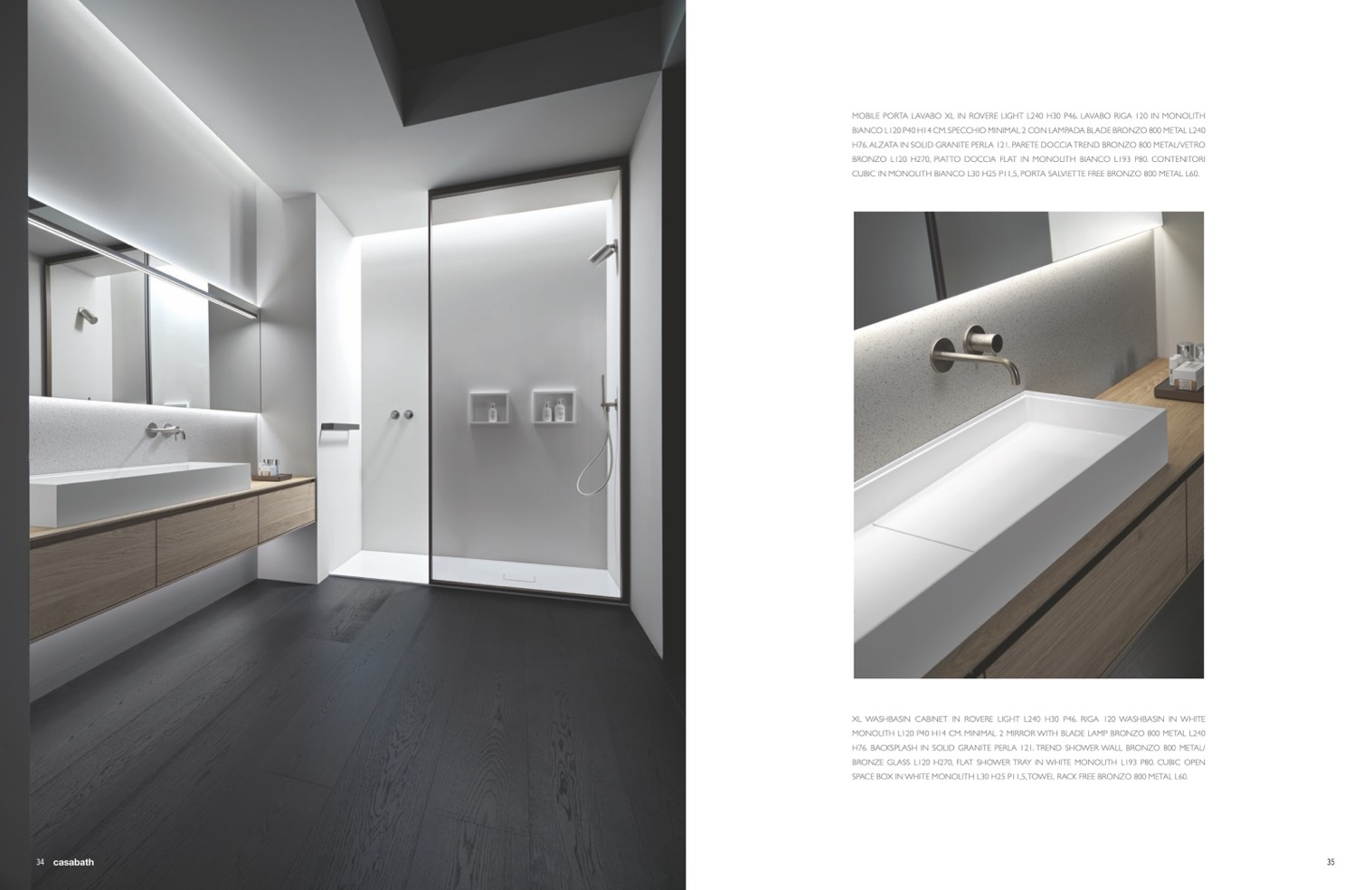BRONZO L120 H270, PIATTO DOCCIA FLAT IN MONOLITH BIANCO L193 P80. CONTENITORI