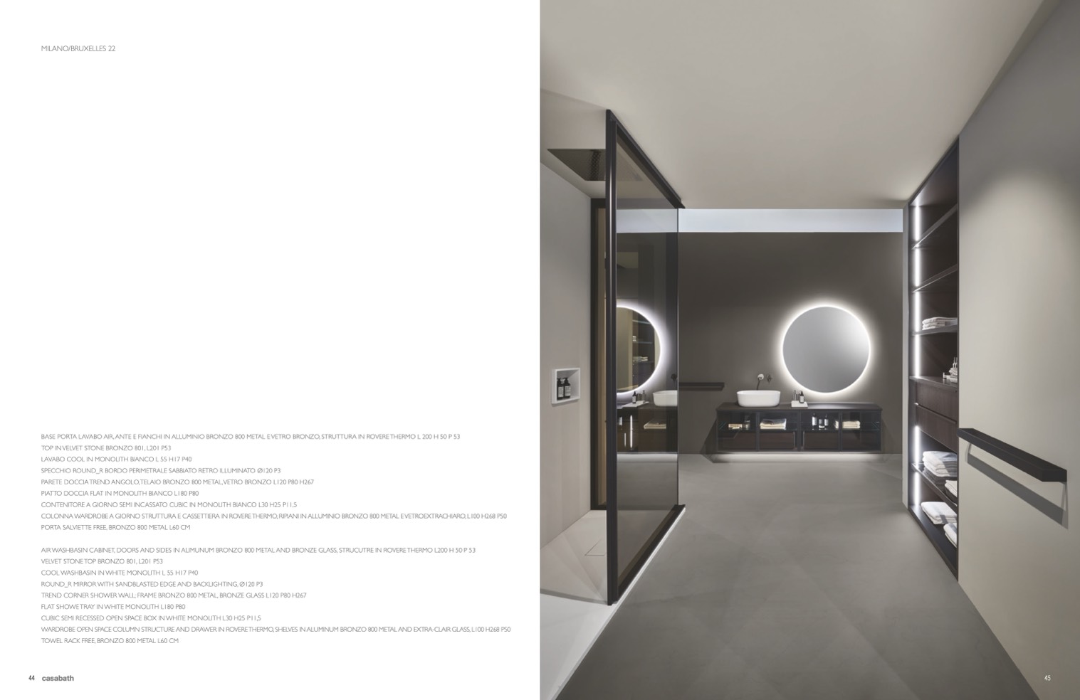 AIR WASHBASIN CABINET, DOORS AND SIDES IN ALIMUNUM BRONZO 800 METAL AND BRONZE GLASS, STRUCUTRE IN ROVERE THERMO L200 H 50 P 53