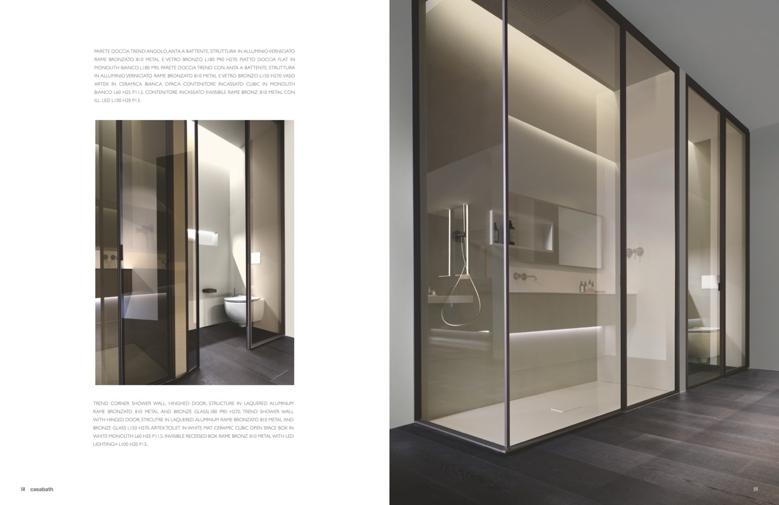 RAME BRONZATO 810 METAL AND BRONZE GLASSL180 P90 H270. TREND SHOWER WALL