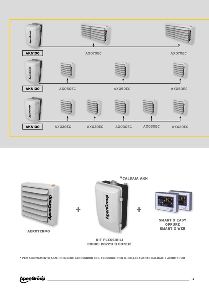 * PER ABBINAMENTO AKN, PRENDERE ACCESSORIO COD. FLESSIBILI PER IL COLLEGAMENTO CALDAIE + AEROTERMO