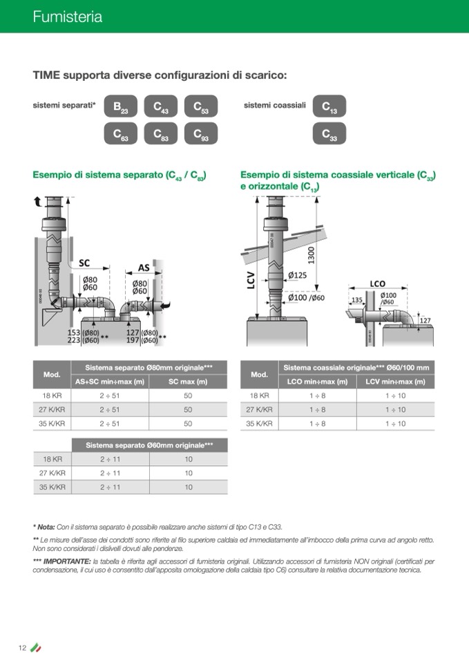 *** IMPORTANTE: la tabella è riferita agli accessori di fumisteria originali. Utilizzando accessori di fumisteria NON originali (certificati per