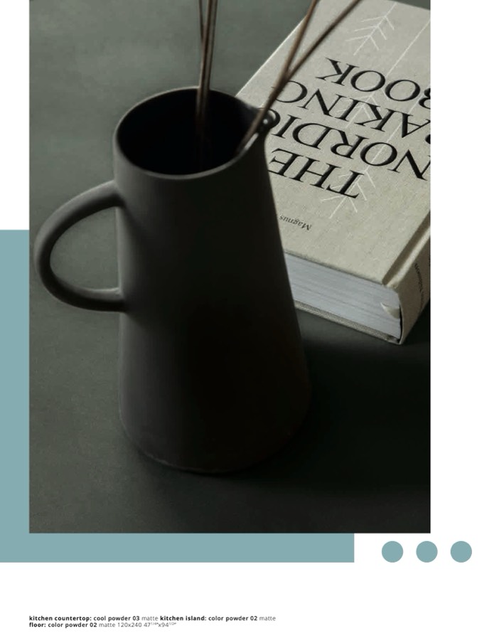 kitchen countertop: cool powder 03 matte kitchen island: color powder 02 matt