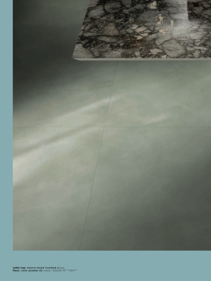 floor: color powder 02 matte 120x240 471/4”x941/2”