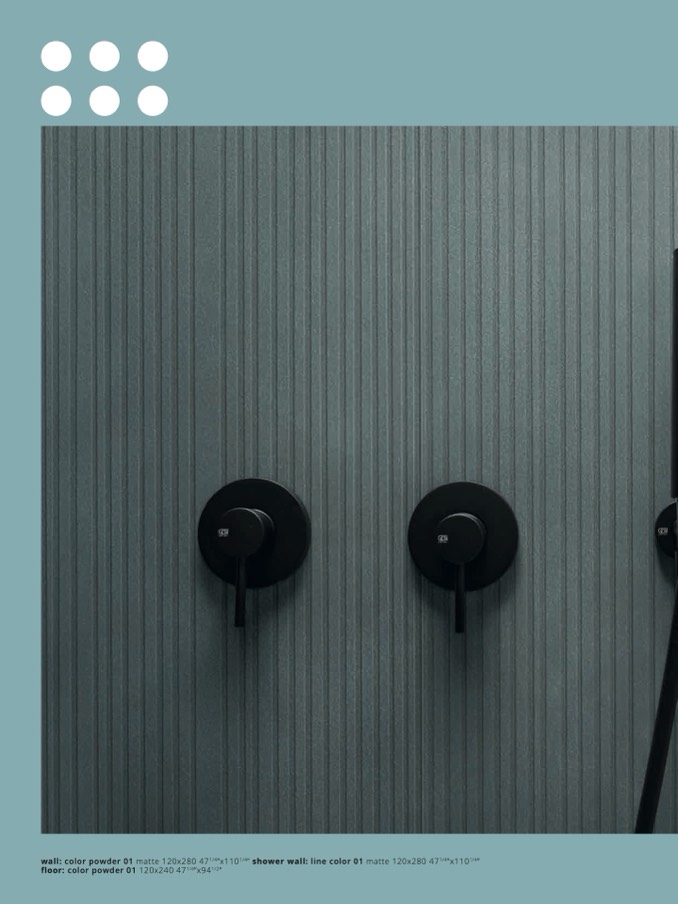 wall: color powder 01 matte 120x280 471/4”x1101/4” shower wall: line color 01 matte 120x280 471/4”x1101/4”