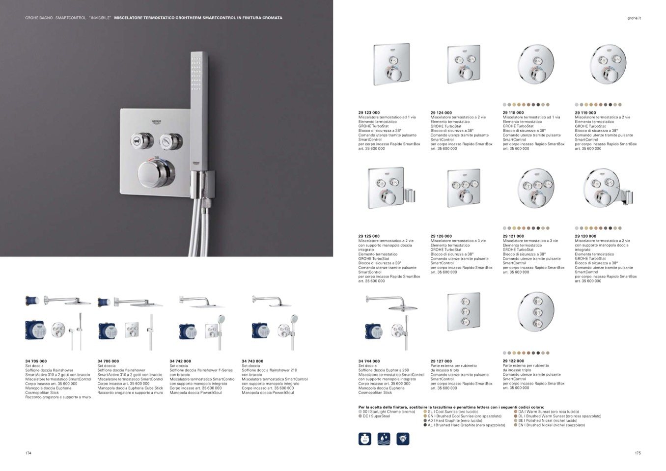 Per la scelta della finitura, sostituire la terzultima e penultima lettera con i seguenti codici colore: