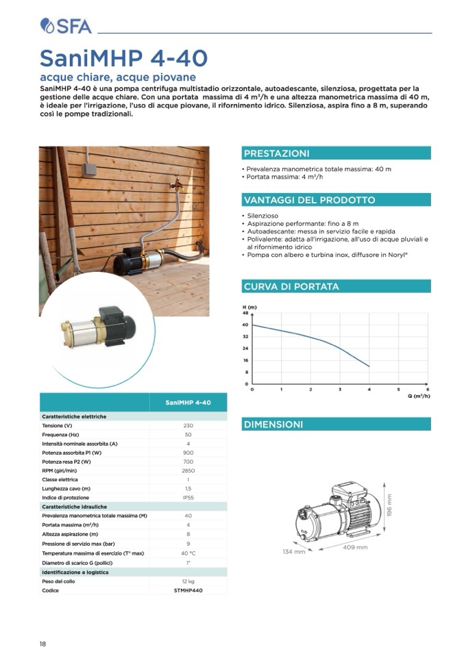 /h e una altezza manometrica massima di 40 m,