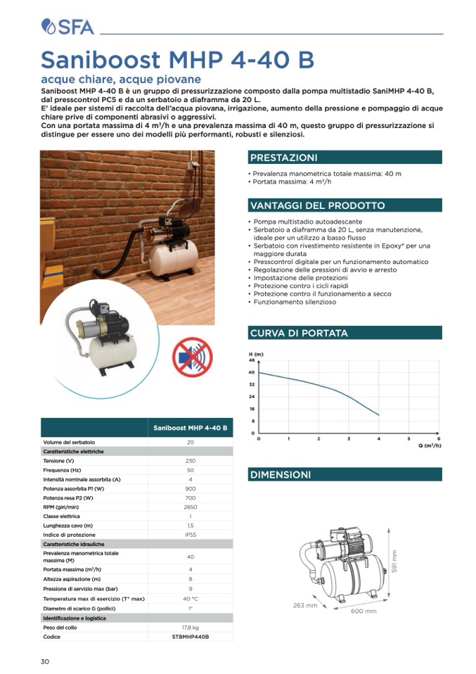 è un gruppo di pressurizzazione composto dalla pompa multistadio SaniMHP 4-40 B,